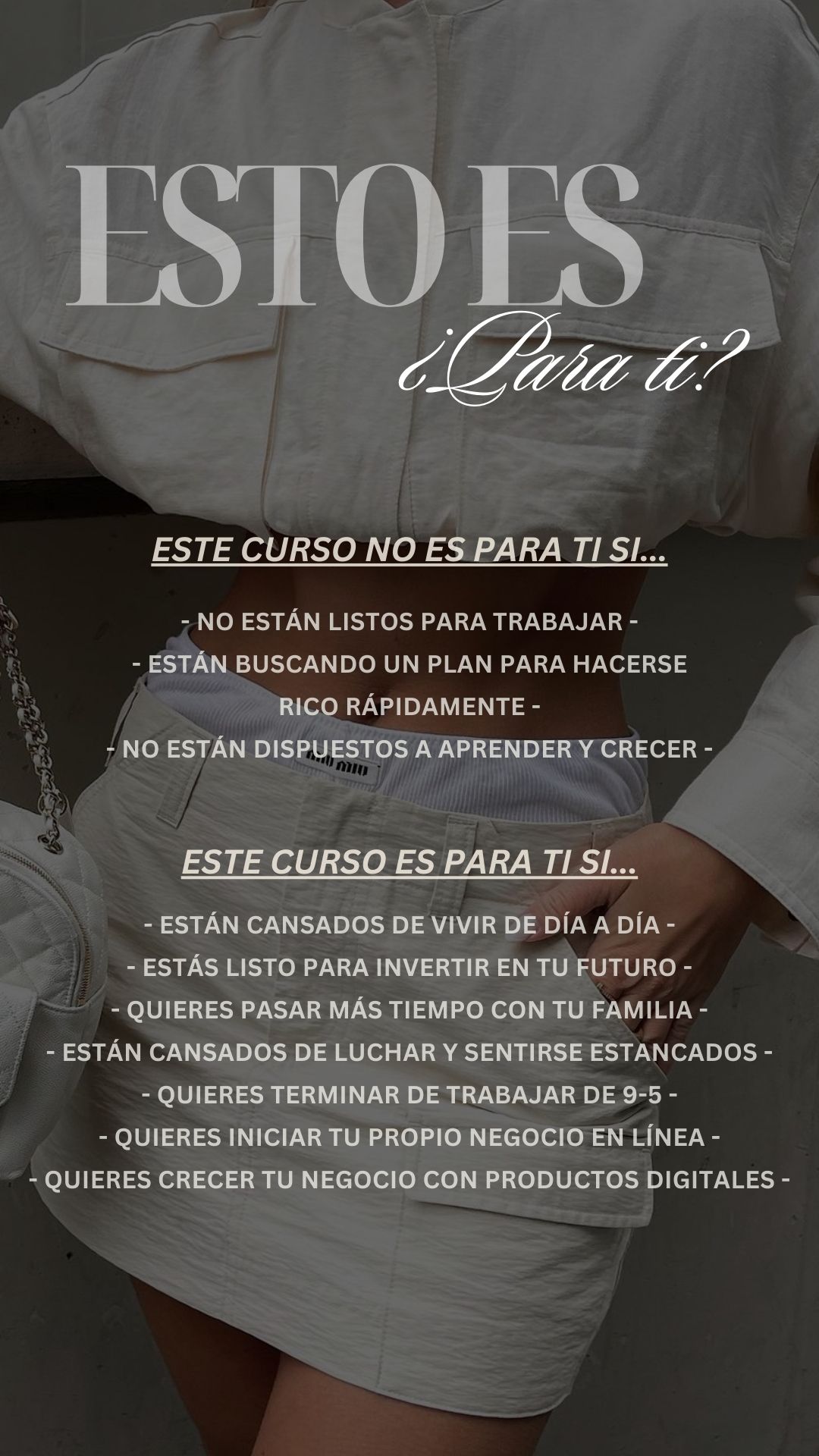 ¡Para nada! El curso te enseña los pasos y estrategias para que puedas vender cualquier producto digital, no solo el curso.